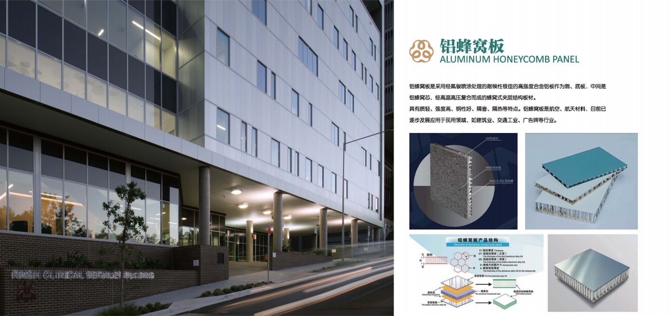 氟碳鋁單板選用優質鋁合金板材為基材,經數控成型,在其表面涂層處理的一種新型裝飾幕墻材料。